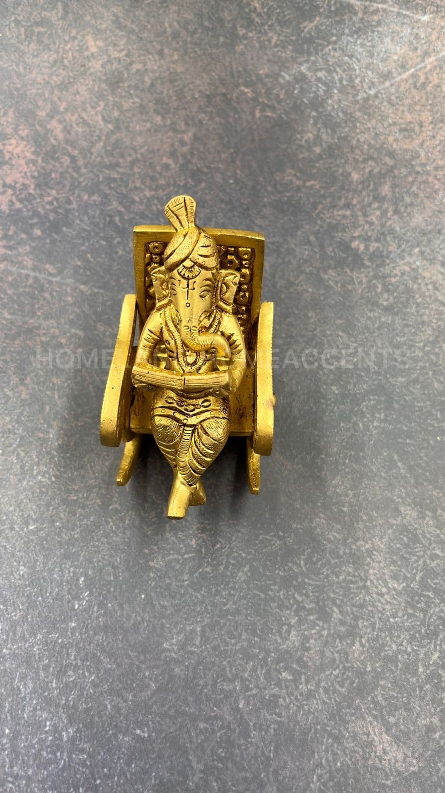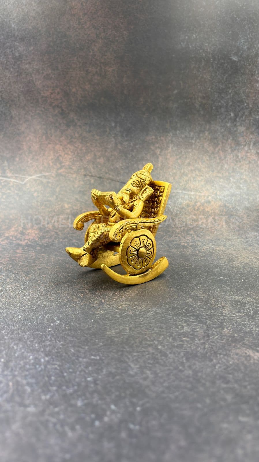 This charming depiction features a serene Ganesh sitting comfortably in a rocking chair, deeply engrossed in reading a book. The scene evokes a sense of calm and wisdom, blending traditional reverence with a modern touch. Ideal as both a showpiece and for pooja (rituals), this unique piece brings a sense of spiritual tranquility and intellectual harmony to any space. Perfect for enhancing your home or altar with a blend of cultural significance and contemporary style.