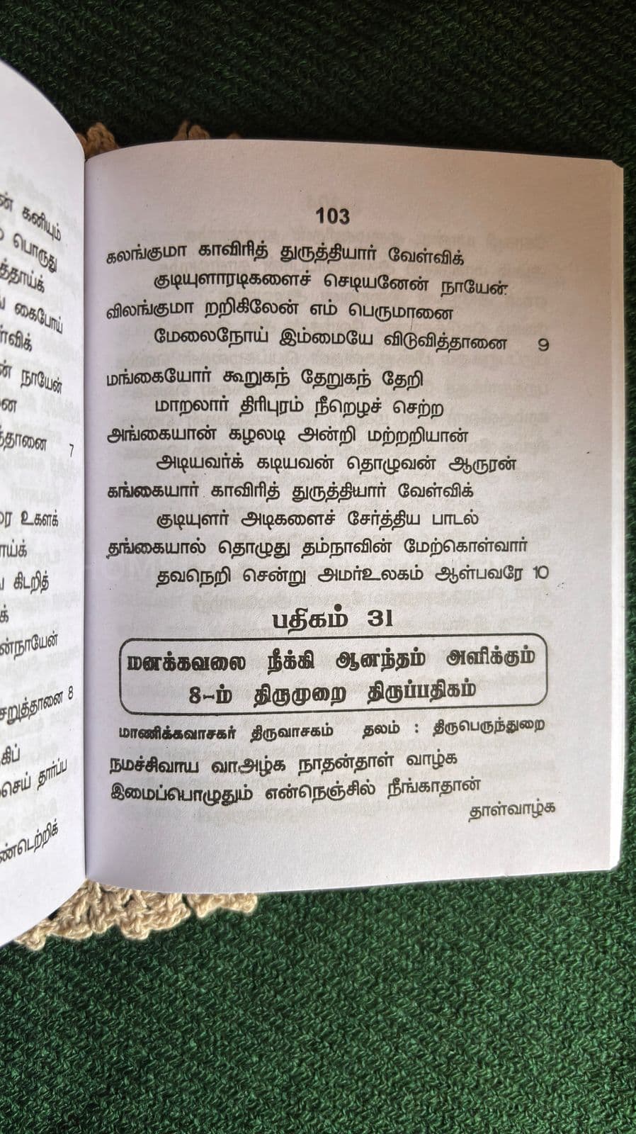 The book contains a variety of Thirupathigams, sacred hymns written in praise of Lord Murugan, and is known for its vibrant lyrical beauty and spiritual depth. Perfect for personal devotion, temple readings, or group worship, this book will guide you in chanting these ancient hymns that are known for their capacity to uplift the soul and bring about both material and spiritual blessings.