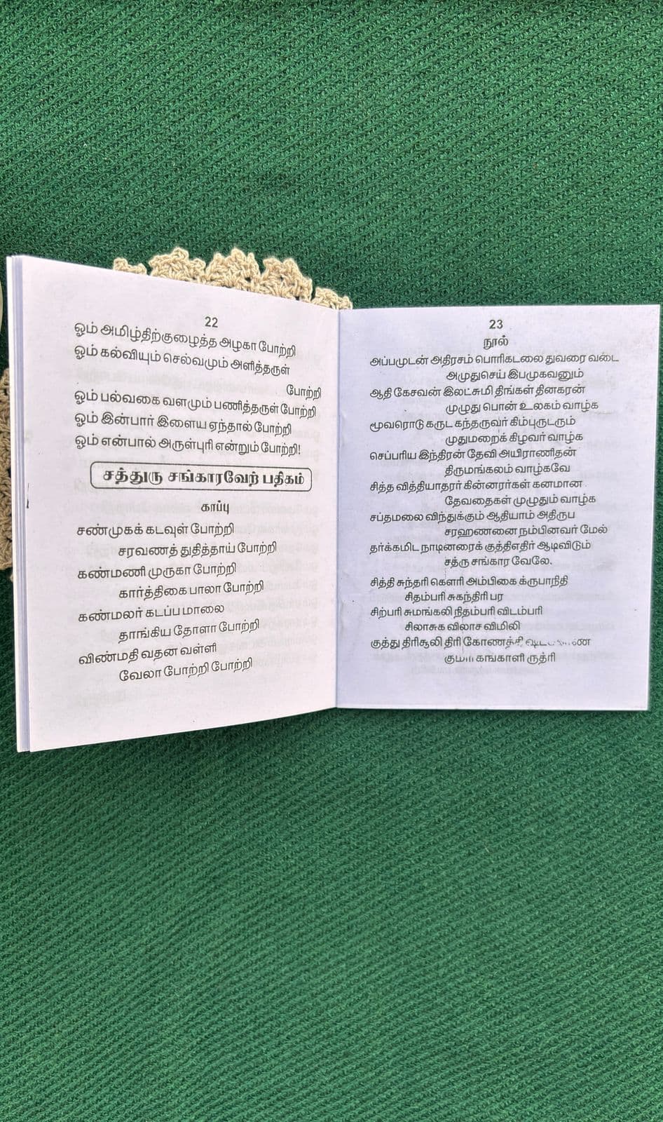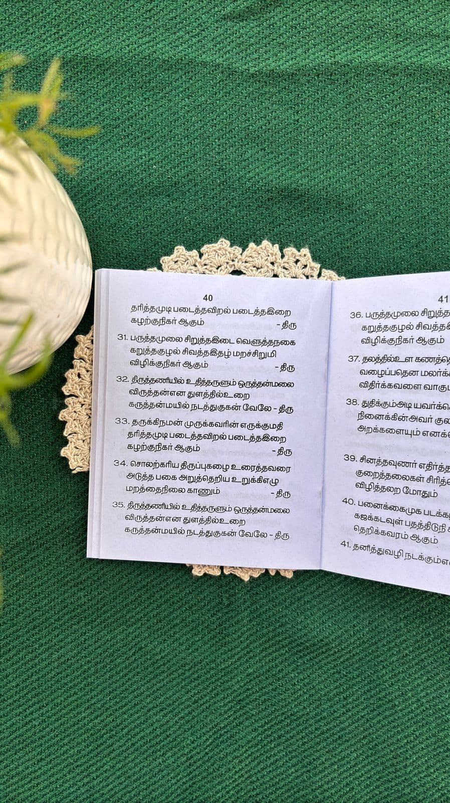 Discover the divine rhythm of Tamil devotion with the Velmaaral pocket size book, a beautifully curated collection of hymns, prayers, and songs dedicated to Lord Murugan. This book features an array of traditional Tamil songs that praise the Lord’s virtues, his adventures, and his role as a protector and divine guide. Richly steeped in culture and spirituality, these songs have been passed down through generations, making this book an essential addition for anyone seeking to deepen their connection to Tamil devotional music.