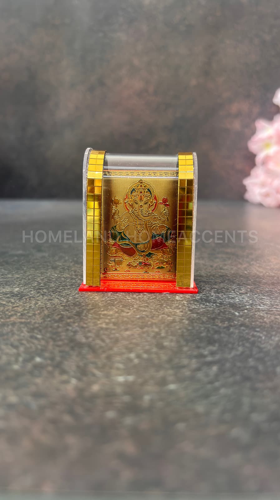 This Ganesh idol is not only a decorative piece but also a symbol of good luck and protection for your journeys. Its compact design ensures it fits seamlessly into any dashboard without obstructing visibility, while the acrylic case keeps it dust-free and durable.