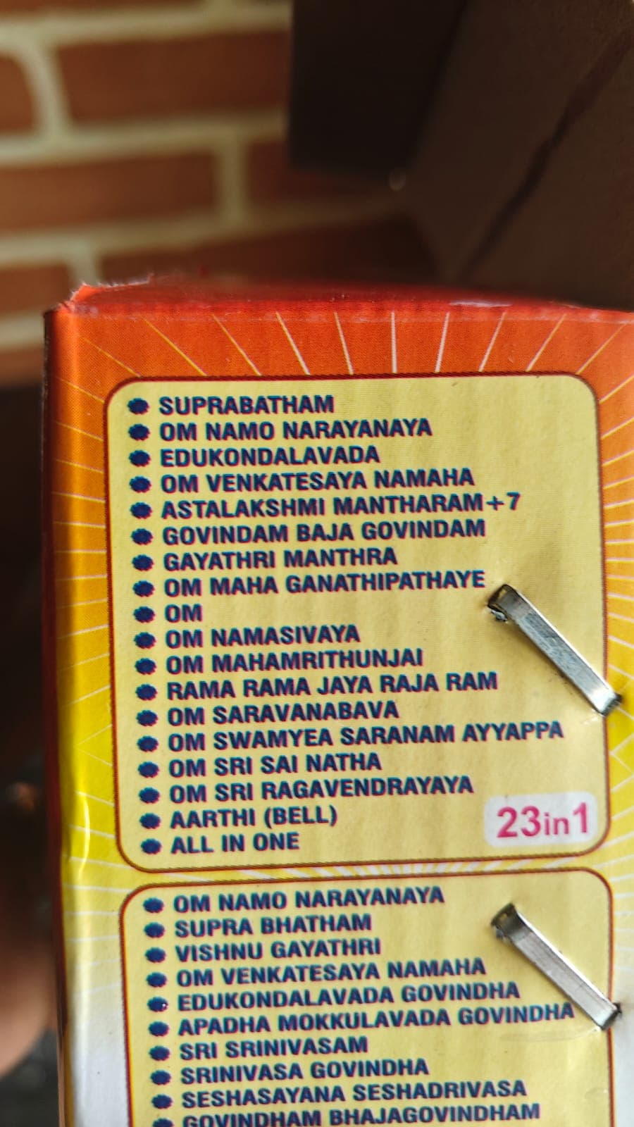 Bring peace and divine energy into your home with the Musical Divine Voice chanting box. Designed in a compact and devotional style featuring Lord Ganesha, this powerful box comes preloaded with 23 divine chants and mantras to elevate your spiritual routine.