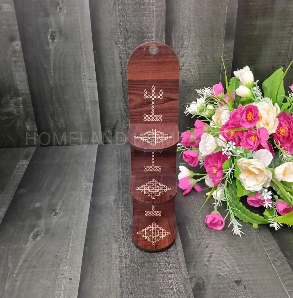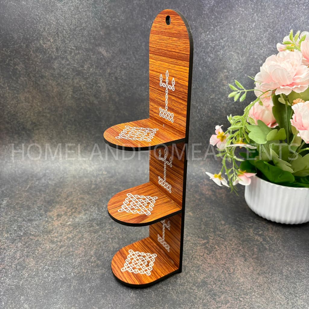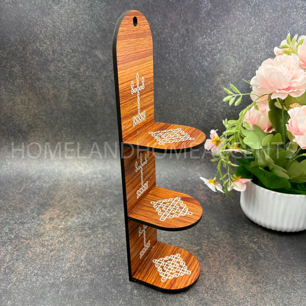 Elevate your home decor or pooja space with this elegant MDF Triple Vilakku Maadam, perfect for small idols, diyas, or as a standalone decorative piece. Crafted with precision, this piece is made of premium MDF material with a stunning finish that complements any traditional or modern setting.