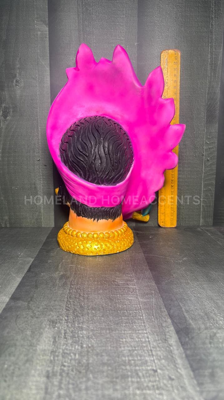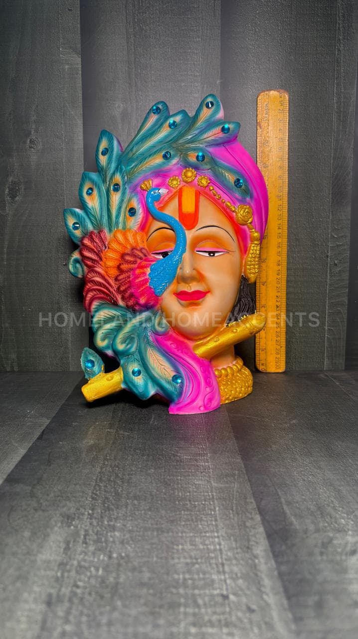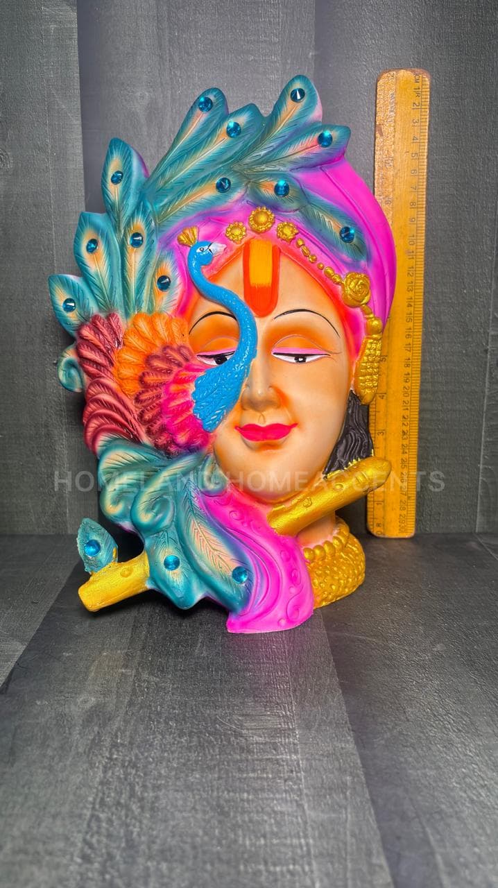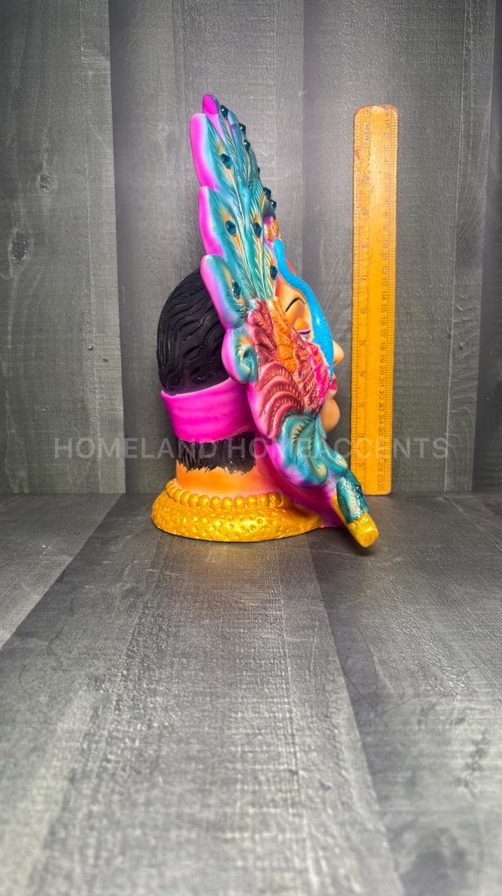 Add divine grace and vibrant charm to your space with this beautifully crafted Krishna table top idol. Made from premium polyresin, this idol features intricate detailing of Krishna’s serene face, peacock feather crown, flute, and a colorful peacock — all hand-painted in bright, eye-catching hues. Ideal for placing on tables, shelves, pooja rooms, or as a centerpiece in your living space. Also perfect as a spiritual and festive gift.